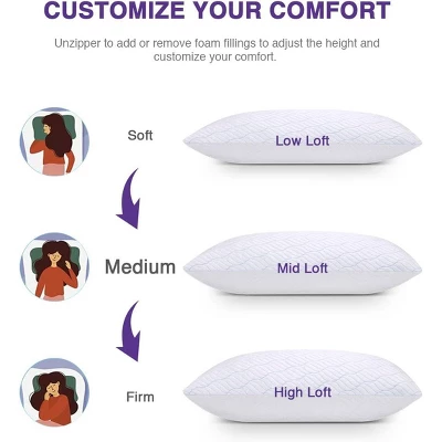 - Customize Your Comfort: taking everyone`s special sleep habits in account, Wishsmile shredded foam pillows are made to be adjustable and moldable,it allows you to control the height and firmness.With convenient zipper on the edge, it takes no efforts to add or remove foam fillings to adjust the height and customize your comfort to your preference.