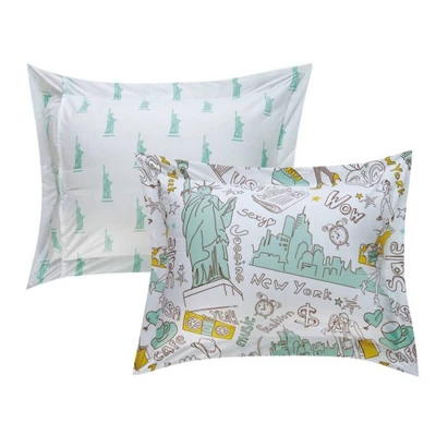 The Ellis is a fun reversible comforter set from Chic Home that captures the hustle and bustle of life in the Big Apple and is perfect for back to school or college. The comforter features a printed New York theme complete with the NY skyline and Lady Liberty on the face and a Statue of Liberty pattern print the reverse.