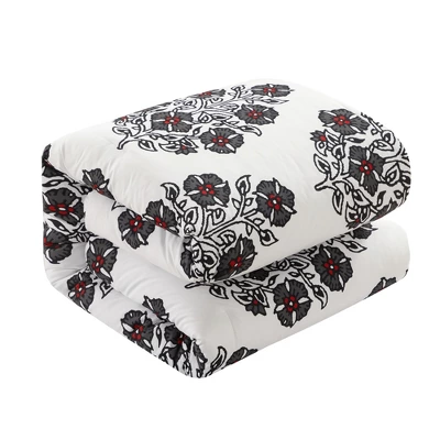 Step into a lush and vibrant botanical garden every time you enter your bedroom with the Robin duvet cover set from Chic Home. This reversible duvet cover set features a hand painted floral print in a gorgeous palette of greens, oranges, and blues on the face with hand painted multi-color dots on the reverse and has a discrete zipper closure. Complete the lush botanical theme with the included design coordinated floral shams or mix and match with your own pieces for a unique look. Specifications: Size: King, Color Scheme: Grey, Piece Count: 7, Set Includes: 1 Piece Reversible Watercolor Floral Print Duvet Cover (104 x 90), 2 Piece Watercolor Floral Print Pillow Shams (20 x 36″ + 2″), 1 Piece White Microfiber Flat Sheet (108 x 102 + 4″), 1 Piece White Microfiber Fitted Sheet (78 x 80 + 12), 2 Piece White Microfiber Pillowcases (20 x 40), Materials: Luxuriously brushed microfiber fabric, synthetic down alternative filling.