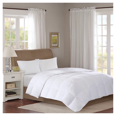The Stain Release 3M Scotchgard 300 Thread Count Cotton Sateen White Down Comforter in level 1 is perfect for all season use. The comforter is filled with high quality 600 fill power 80% white down, 20% feather. Did you know that down provides approximately three times the warmth per ounce compared to even the best synthetic alternatives? Down is also breathable and helps to wick away moisture while you sleep. Our 300 thread count, 100% cotton sateen cover features 3M Scotchgard stain release which removes dirt easier in wash. The fabric remains soft and breathable while helping to keep your comforter looking newer longer. The end to end sewn through box quilting ensures that the white down doesn’t shift, so you’ll never have any cold spots on the bed.
