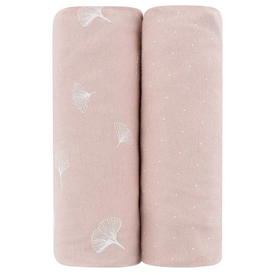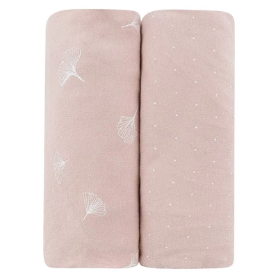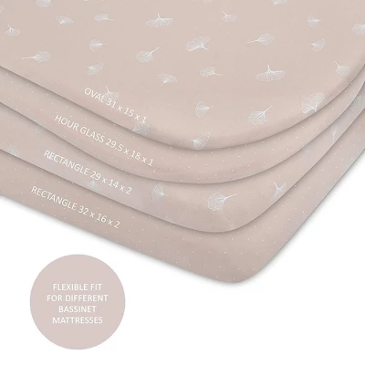 - Flexible-Fit Bassinet Sheet 2-Pack for Baby Girl in Rosewater Pink with Pin Dot and Gingko Leaf Designs� Bundled in our charmingly cute and compact packaging, this sheet set makes for the perfect baby shower gift!