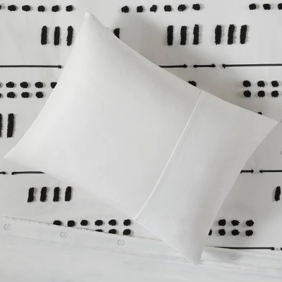 The Intelligent Design Milani Clip Jacquard Duvet Cover Set brings a bold, modern update to revitalize your bedroom. This duvet cover features an abstract clip jacquard pattern that pops against the base fabric for a beautiful contrasting look. The matching shams repeat the contemporary design of the jacquard duvet cover to give your bed a chic casual allure. Machine washable for easy care, this modern duvet cover set is OEKO-TEX certified, meaning it does not contain any harmful substances or chemicals to ensure quality comfort and wellness. An antimicrobial treatment helps reduce the growth of odor causing bacteria and keeps fabric lasting longer. A button closure at the foot end allows you to place a padded insert within the duvet cover and internal corner ties prevent it from shifting (Insert is NOT included).