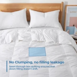 Balance casual luxury and contemporary style with this white goose feather fiber down comforter. Featuring with premium white goose feather fiber and white goose down fill for light warmth and year-round warm. Sewn-through box construction to keep the fill from shifting.Featuring with premium 5% white goose down and 95% white goose feather fiber fill and covered with 360 thread count downproof cover to keep you warm throughout the whole night,and it’s ultra soft to the touch.