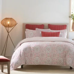Lodi Reversible Percale Cotton Comforter Set Red/White – Heirlooms Of India