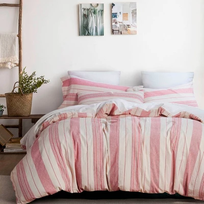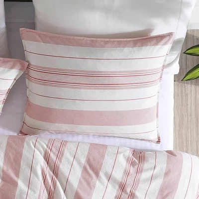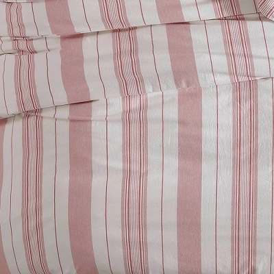 Vertical stripes in deep Ivory hues create a lively relaxed statement for your favorite room. Relaxed and comfortable like your favorite shirt, this is the ultimate bedding ensemble for casual living. This 3 piece comforter is the perfect choice for your Master suite or favorite Guest space. Keep it simple or add your own favorite touches and create the Zen space you deserve. 100% Cotton with 200 Threadcount.